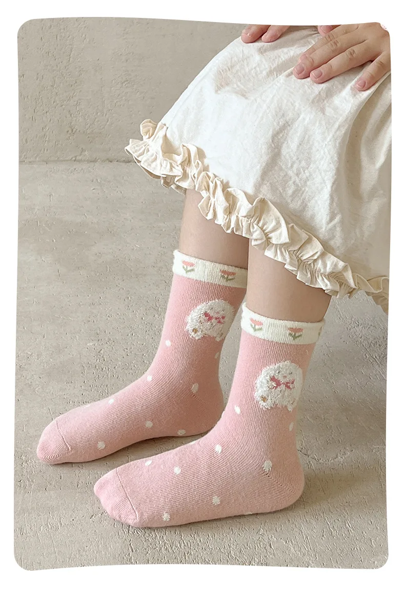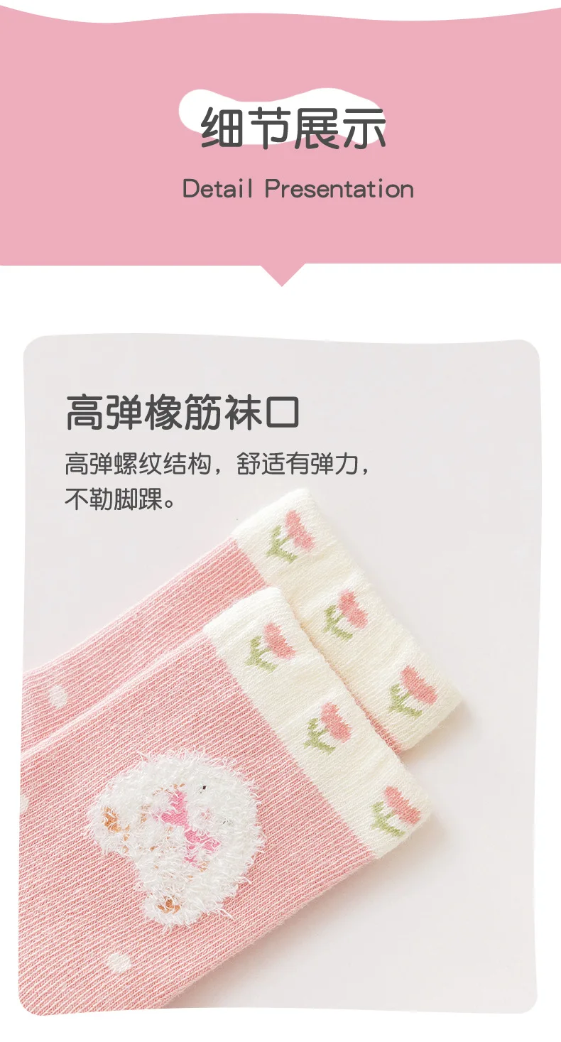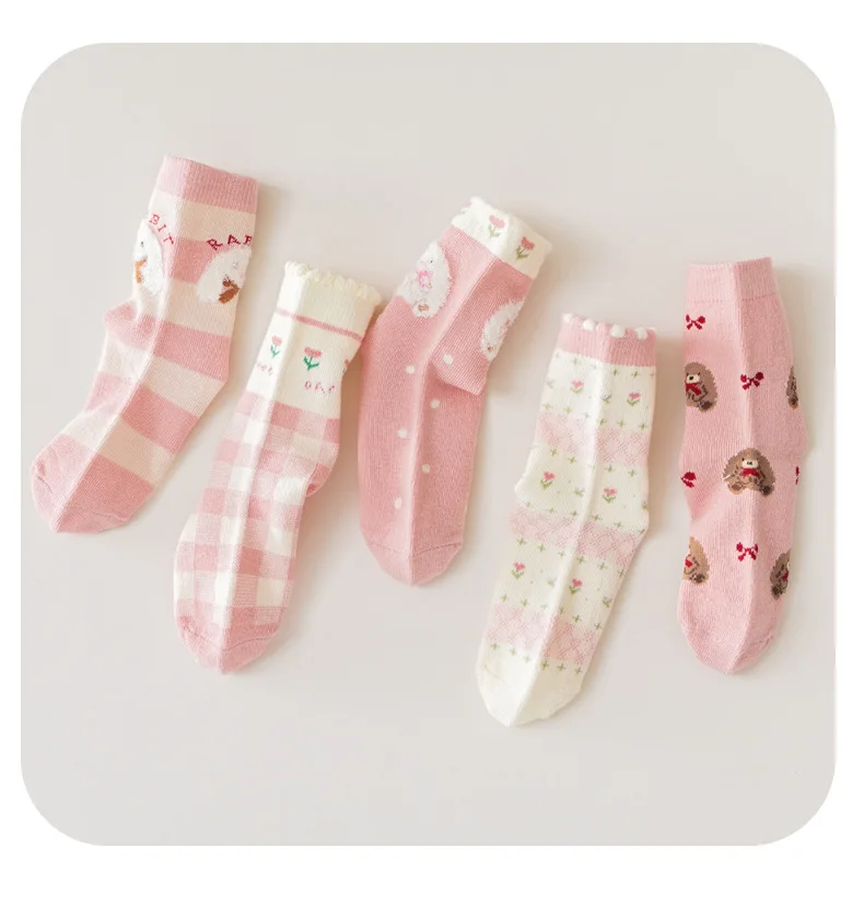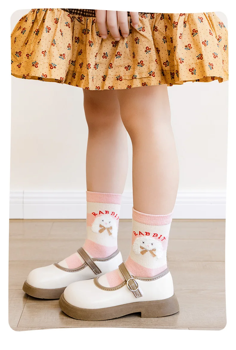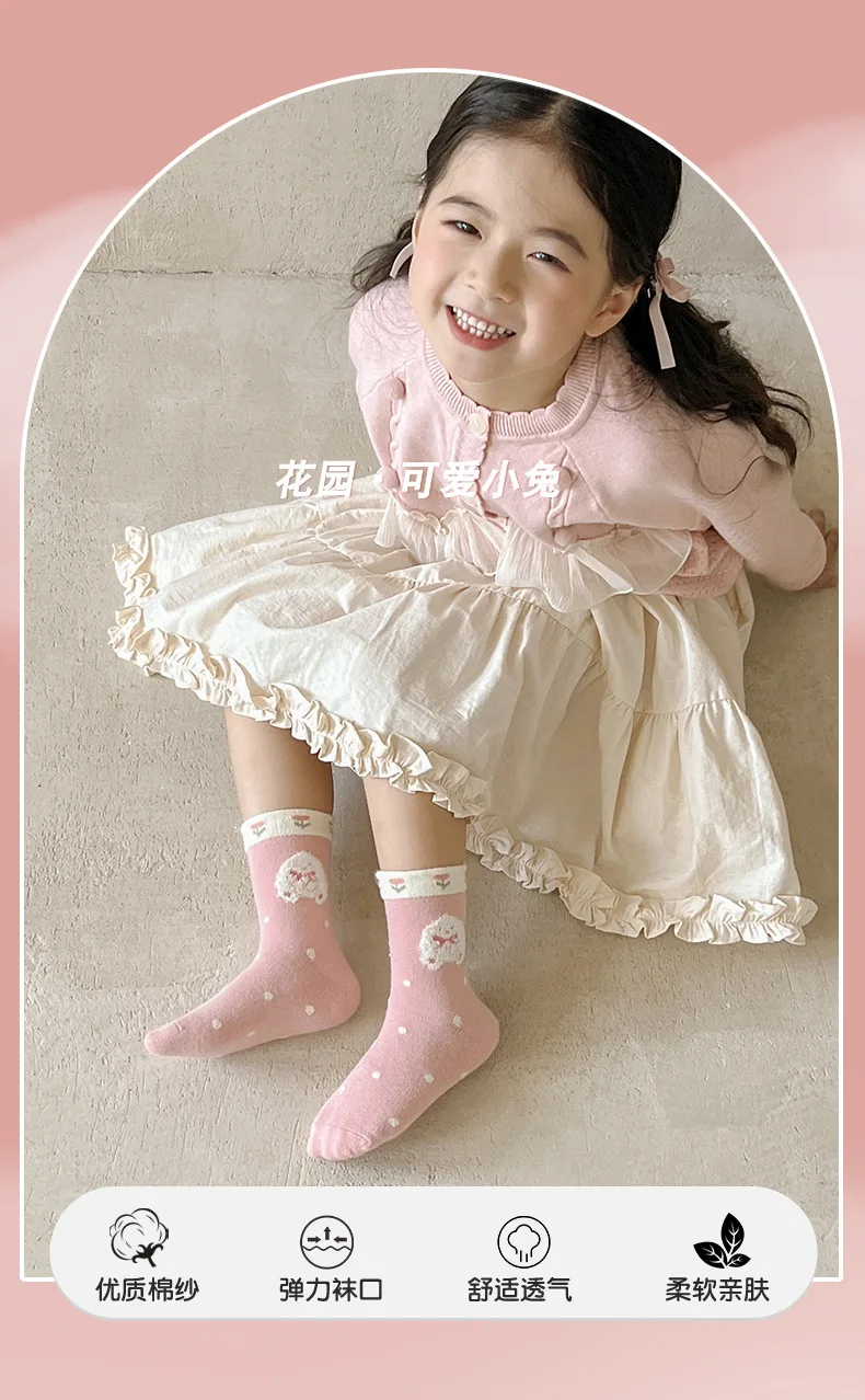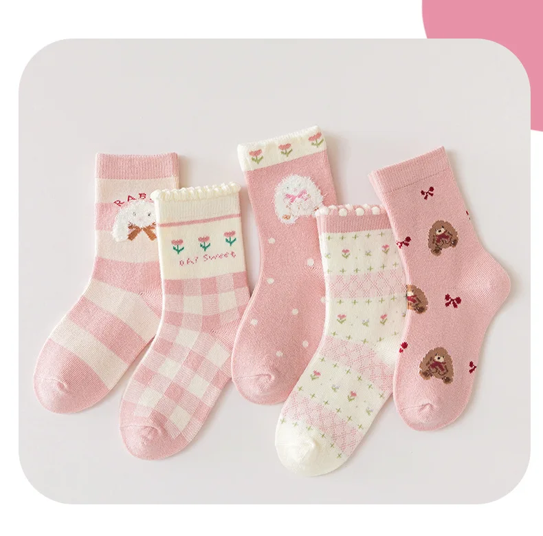 Autumn Girls Socks Baby Cute Bunny Pink Floral Pattern Sock Kids Medium Socks Children's Socks 5 Pairs Cotton Socks